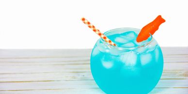 Gatorade with a splash of grenadine and sprite with gummy fish and sharks in it. So fun for kids